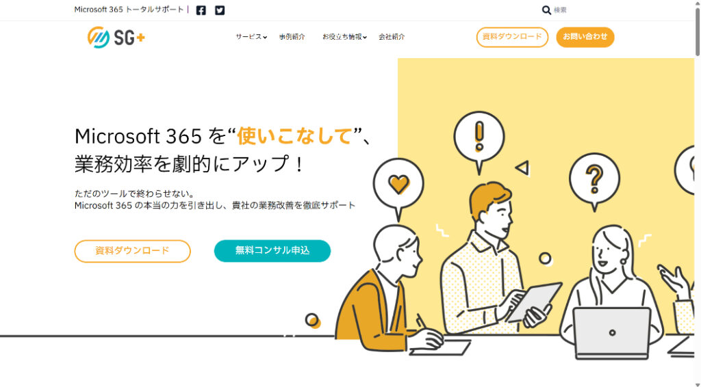 SGプラス株式会社(SG Plus)は、Microsoft 365活用支援に特化したコンサルティング会社です。SharePoint構築やPower Platform、Copilot活用に加え、TeamsチャットやOneNoteを活用した情報共有・業務整理の最適化を支援。現場目線でDX推進と業務効率化をサポートします。
