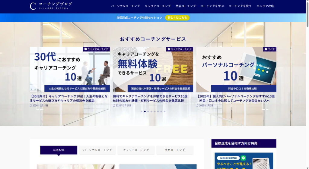 コーチングブログは、コーチング事業を行なっている起業家によるコーチングブログです。「コーチングのノウハウ」や「おすすめのコーチングサービス」、「20代のキャリア攻略方法」などの記事をまとめさせていただいています。