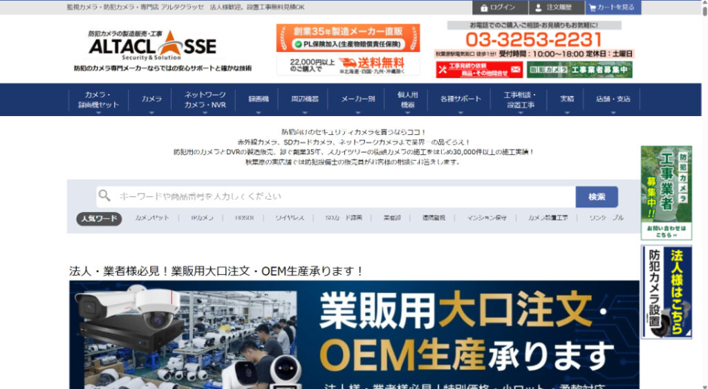 機材の販売、設置工事、防犯カメラの事ならアルタクラッセにお任せください。