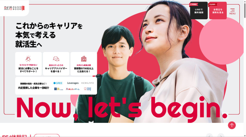 大学生・大学院生向けの就職活動支援サイトです。自己分析や企業研究、エントリーシート対策、面接準備など、就活の各ステップに必要な情報をわかりやすく提供しています。学生が自信を持って次の一歩を踏み出せるようサポートするサイトです。