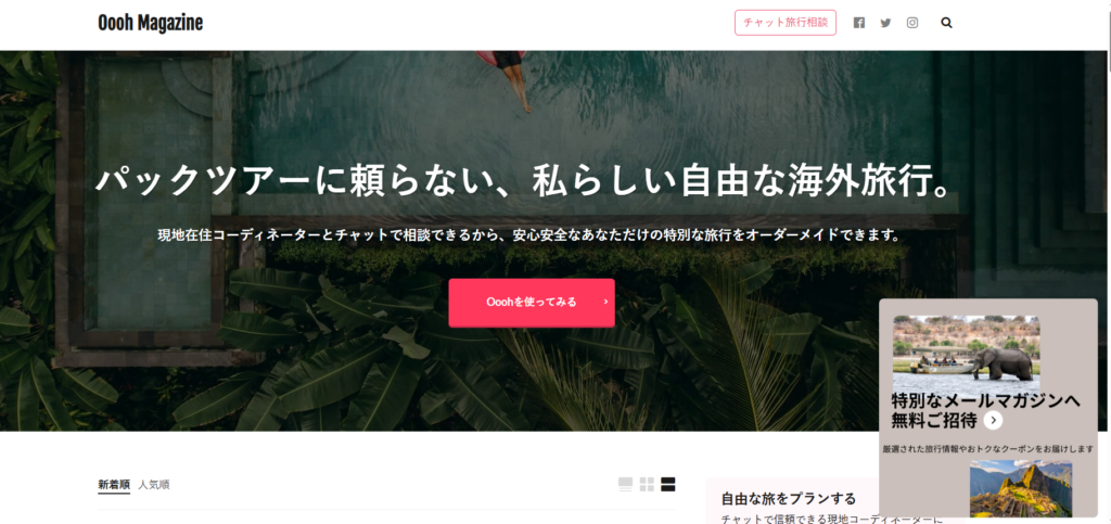 Oooh株式会社の運営するメディア「Oooh Magazine」内の記事「【ジャンル別】旅や日常をもっと楽しむ!人気のライフスタイルメディア厳選紹介」に当社が掲載されました。