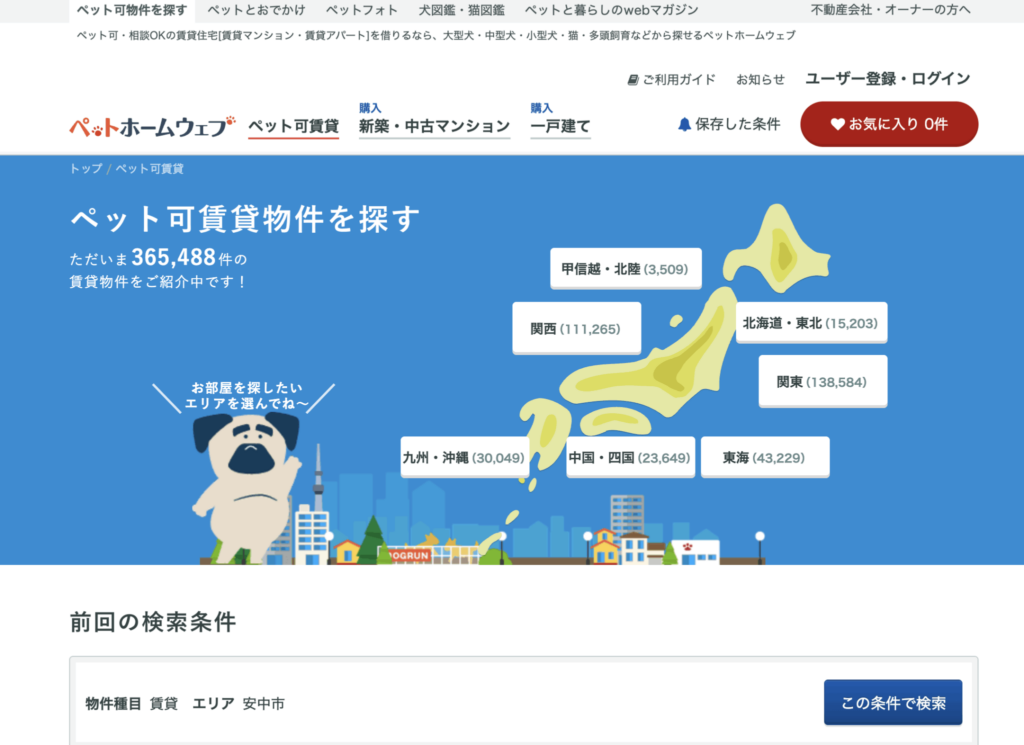 掲載されている情報は自動判定によって分類されているため、気になる物件は詳細を確認しながら進めるのが安心です。ペットとの暮らしに合った住まいを全国から探したい方にぴったりのサイトです。